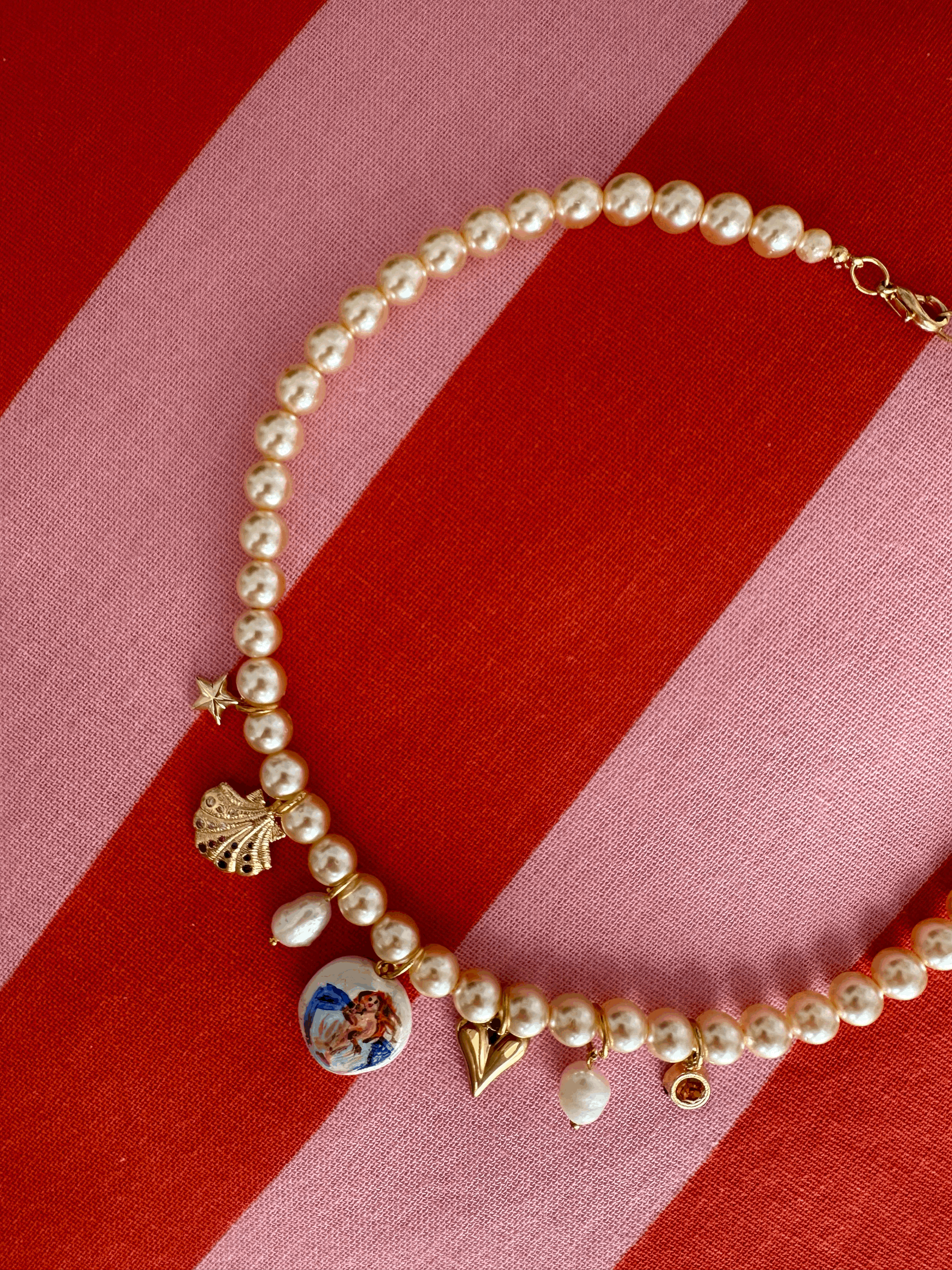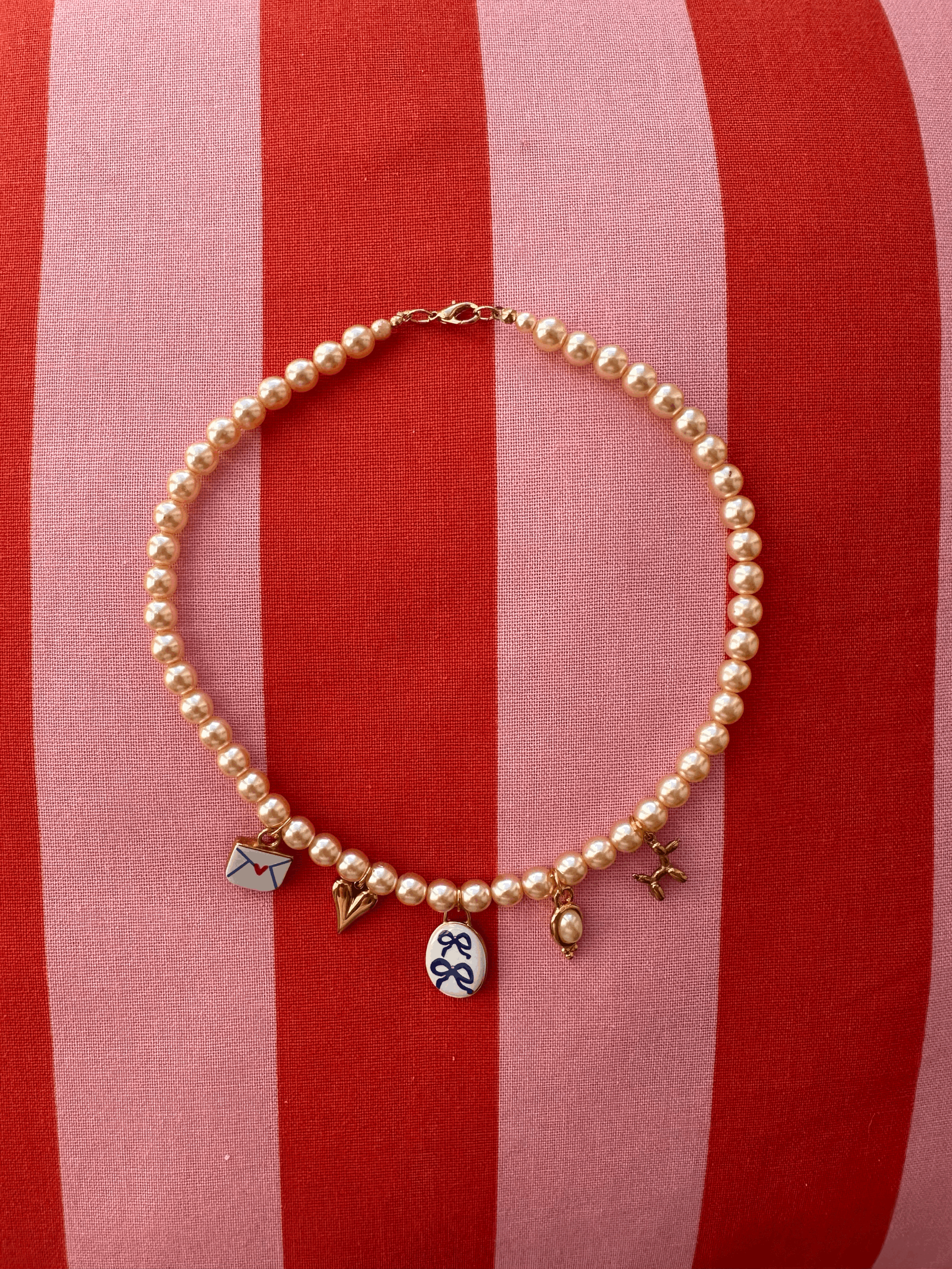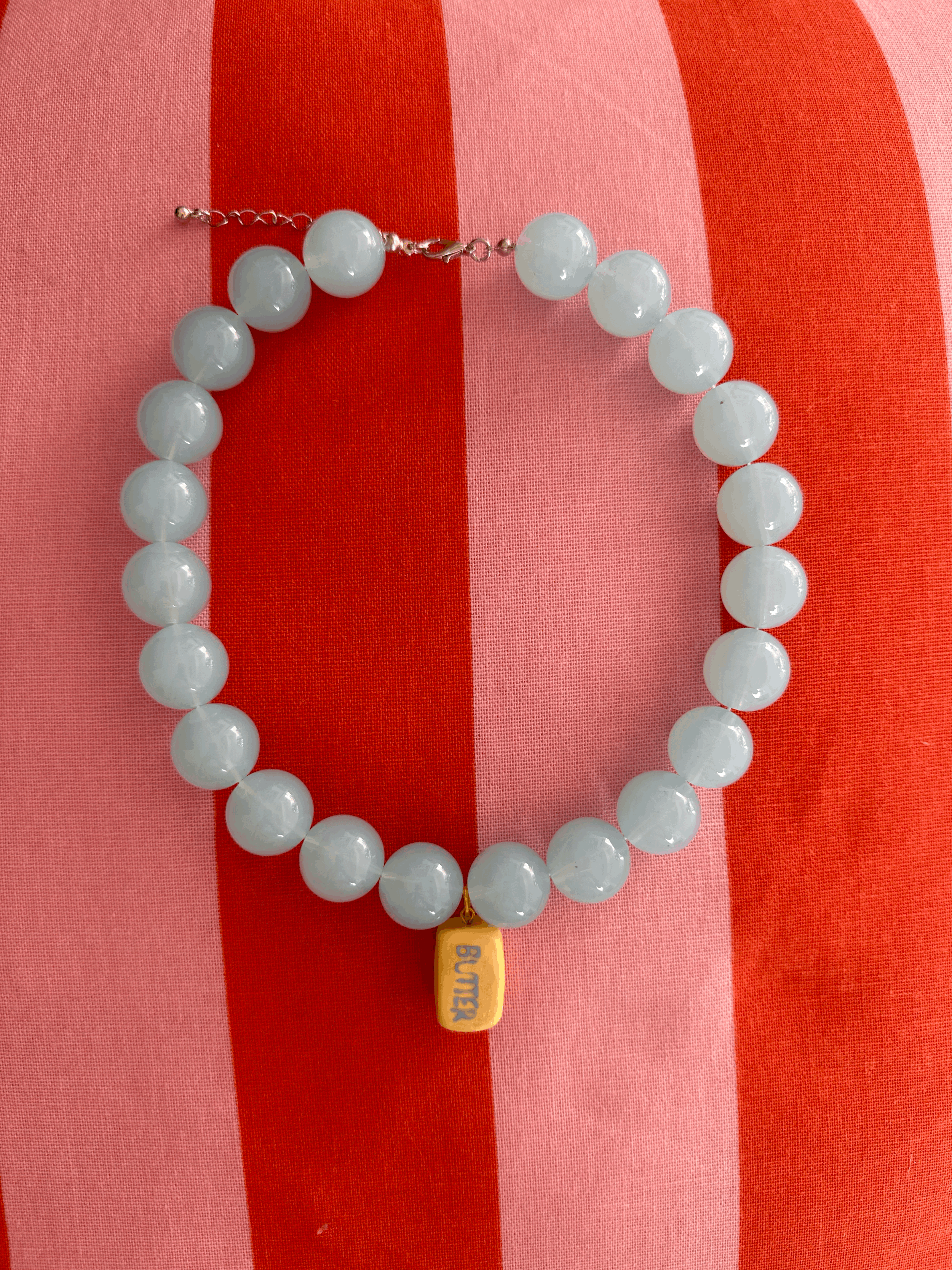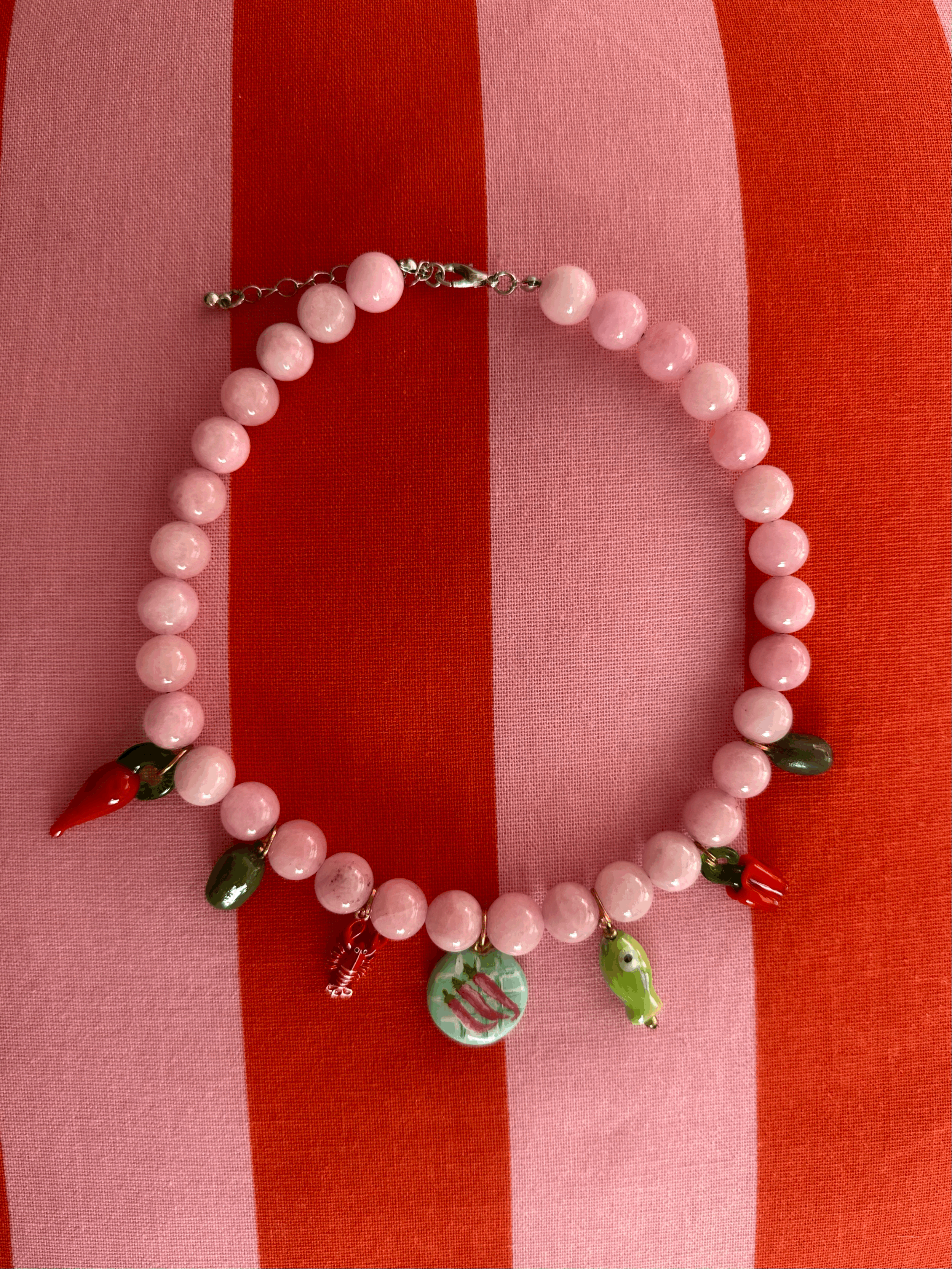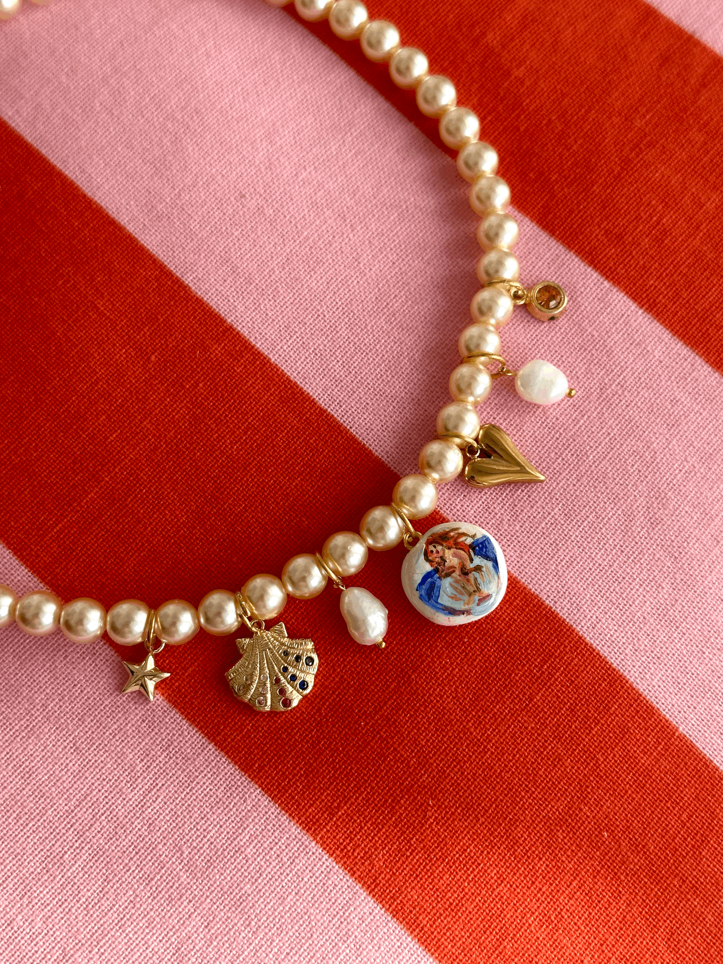 We have a selection of vintage sourced and 18K gold-filled charms, delicate glass and handcrafted, hand-painted clay charms. We recommend handling with care and avoiding prolonged exposure to water or direct sunlight.